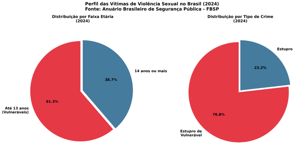 Esses dados evidenciam que a maioria das vítimas são crianças em situação de extrema vulnerabilidade, incapazes de compreender plenamente a natureza dos atos ou de oferecer resistência efetiva.