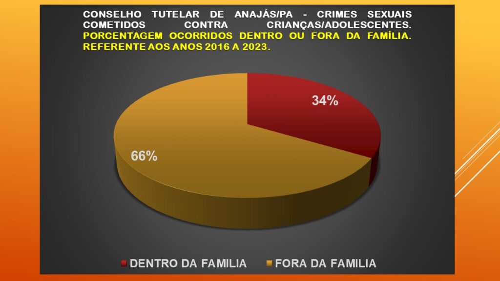 A maioria dos crimes, entretanto, ocorre fora do ambiente doméstico (66%), somando 99 casos extrafamiliares. São episódios de abuso cometidos por vizinhos, colegas, líderes religiosos ou pessoas de confiança, o que demonstra o quanto a infância está vulnerável em todos os espaços sociais.